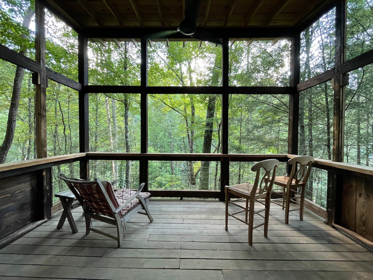 豪华树屋,配备热水浴缸,位于34英亩/国家森林