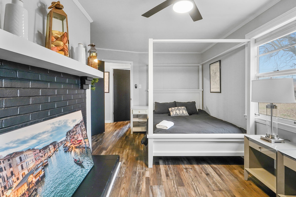 Welcome to one of Clarksville's highest-rated retreats — a 4.99-star, designer-curated brick home blending modern sophistication with Southern comfort. Three bedrooms furnished with Restoration Hardware and Pottery Barn pieces, a fully equipped gourmet kitchen, room-darkening shades, and a private fenced backyard. Just off Exit 4 — one block from dining, breweries, and the Riverwalk. Fort Campbell under 15 min; Nashville 45 min. Perfect for business, family, or a weekend escape.