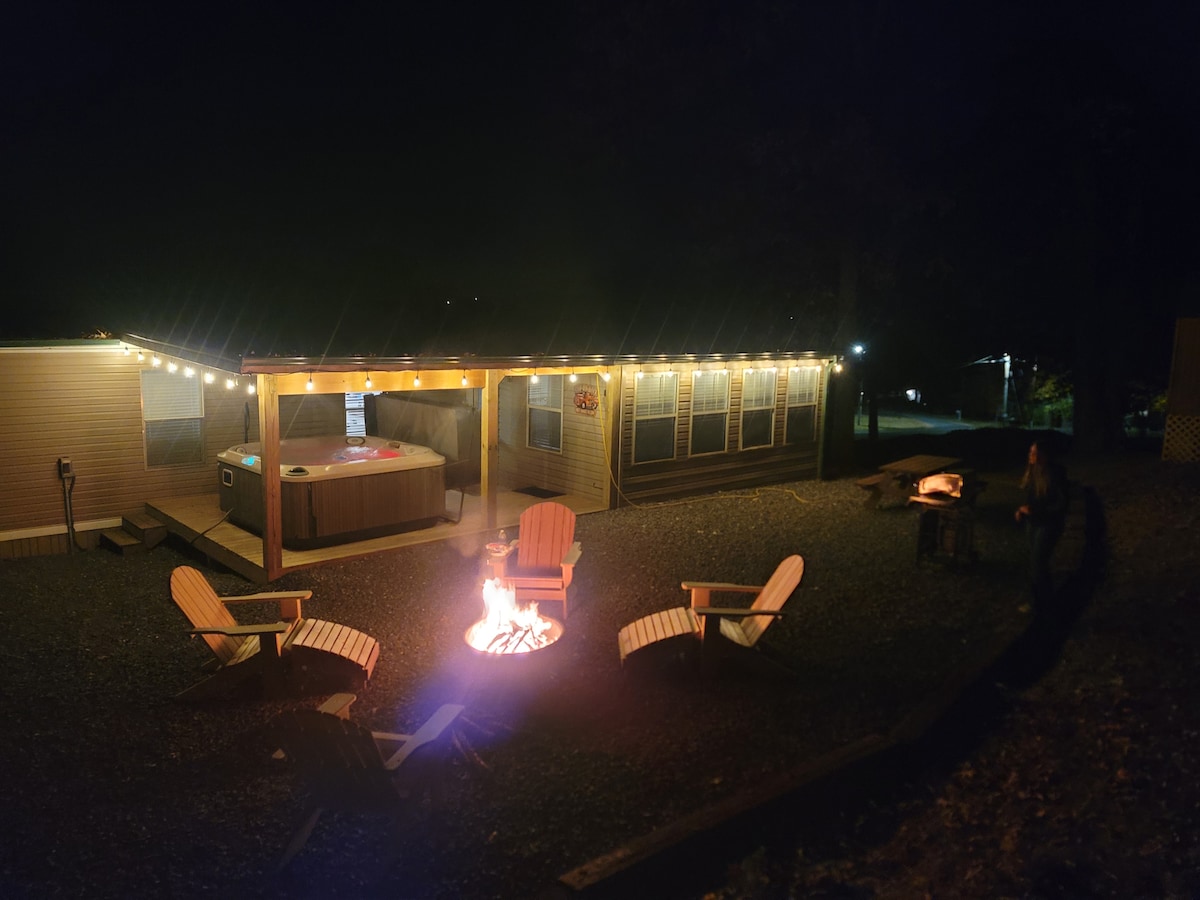 Lakeway is a beautiful, modern 2 bedroom 2 bath home with bonus room (including Futon Bed) in Dandridge, TN on beautiful Lake Douglas. Lake views from the front deck and a private backyard hot tub, firepit, chairs & picnic table. Sleeps 6. There is a public launch and Marina to go play on the lake for the day less than 12 min away. Lots of wildlife in the area. The deer come and go throughout the day. Cable TV, High speed internet, and Smart TV's.