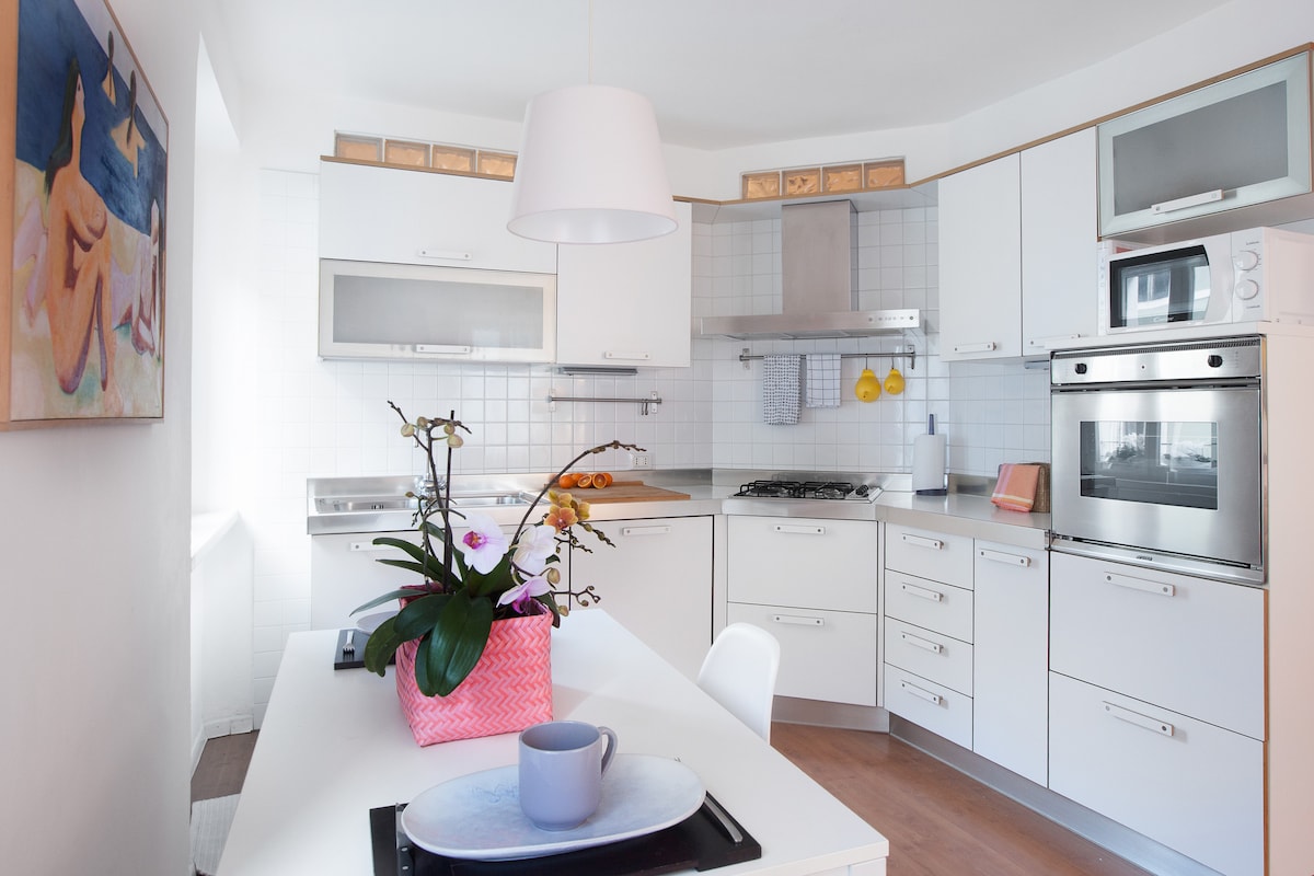 Simpatico spazio abitativo open space, dotato di angolo cucina, con tutte le attrezzature, lavastoviglie (con detersivo), microonde, bollitore. Zona soggiorno con divano e TV. E' presente un grande bagno con doccia e asciugacapelli. L'ospite troverà lenzuola (con cambio settimanale), asciugamani (con una sostituzione nel corso della settimana), tovaglie e tutto il necessario per l'igiene ambientale. Comodo parcheggio in area recintata privata adiacente alla abitazione e spazio per biciclette.