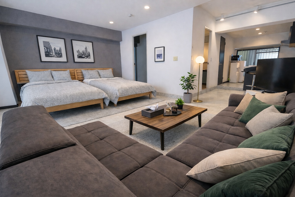 駅徒歩2分|最大7名|通天閣&動物園すぐ|広々2BR