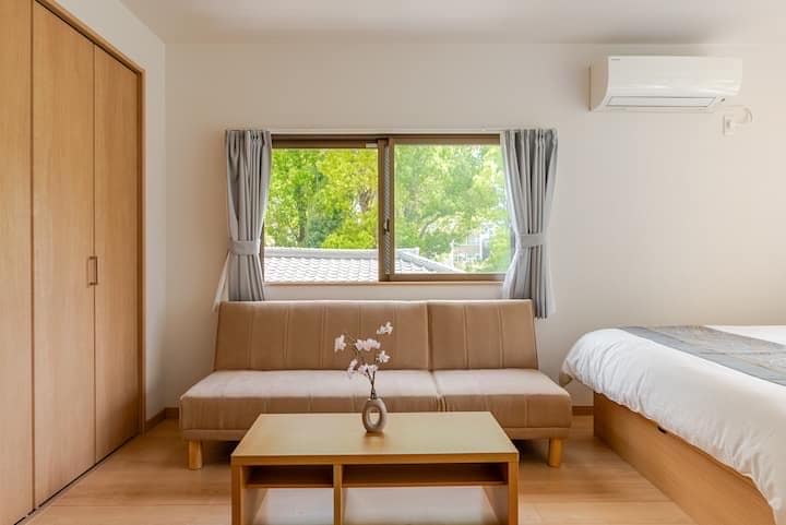 这是一间由室内设计师从零打造的 1LDK、41㎡ 公寓型民宿。 同一栋大楼内设有多间独立客房。 步行 7 分钟即可到达南海电铁与大阪地铁的天下茶屋站,从那里乘坐南海电车 2 站(约 5 分钟)即可到达难波站,无需换乘即可 35 分钟直达关西机场。 大阪地铁堺筋线还可直达京都、通天阁、黑门市场等主要观光景点。 天下茶屋是一座保留昭和时代风貌、又不断涌现新餐厅与商店的热门街区,兼具怀旧与活力。 ◆ 房源特色 安静、安全的住宅区 直达难波、关西机场、通天阁、黑门市场、京都(阪急线),无需换乘 步行 2 分钟范围内有便利店与超市 车站前设有购物中心 厨具齐全,可自行烹饪 整间独享,完全私密 自助入住系统,轻松无压力 免费洗衣机(附赠洗衣液) 洗漱用品齐全(洗发水、护发素、沐浴露、浴巾、拖鞋、牙刷、化妆棉、棉签、剃须刀) 可用日语、英语跟中文沟通 提供高速 Wi-Fi