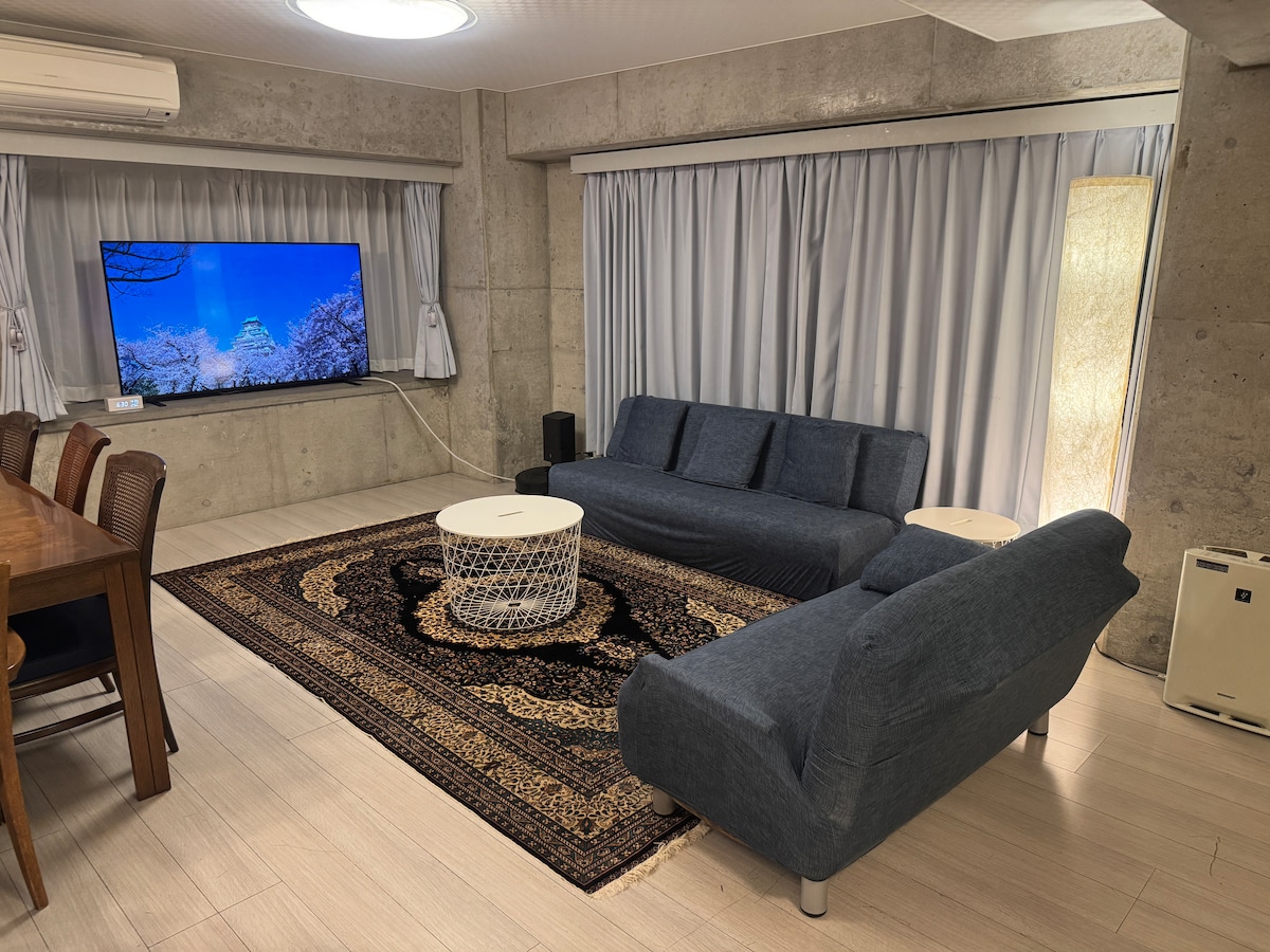 大家好 本民宿地点位于大阪市中心, 道顿堀2分钟 走路1分钟是购物天堂心斋桥 黑门市场8分钟 楼下有24小时便利店3家。附近有大型生活超市LIFE。走路1分钟有购物中心堂吉柯德。离地下铁,JR,近铁电车站步行只需5分钟左右。机场大巴站步行约8分钟左右。 民宿设施方面备有空调 冰箱 洗衣机 电视 热水壶 微波炉 一次性用品 碗筷等 房间共有58平方米(不包含阳台)。2个房间,可住2到6人(按成人人数计算) 外有阳台可晒衣服。 1张双人床,1张双人床垫,2张单人床垫。客厅按摩沙发可供住客无限免费使用,请小心使用。入住期间有任何问题随时欢迎咨询。 如需购物的话,可咨询地点。本民宿是新开业民宿。 若需要接机服务的话可联系房东。可进行就近地区(如京都、奈良等)包车服务。对本民宿感兴趣的话可以通过airbnb网站联系, (Hidden by Airbnb) 、微信等方式联络。 欢迎大家来大阪游玩。祝您生活愉快! 对应语言 日语,中国语 应日本法律规定住客必需停留2晚3天。 本房是在持有大阪府公认的许可证的情况下运营,所以在您入住时需所有入住者的护照信息做登记。 谢谢合作。