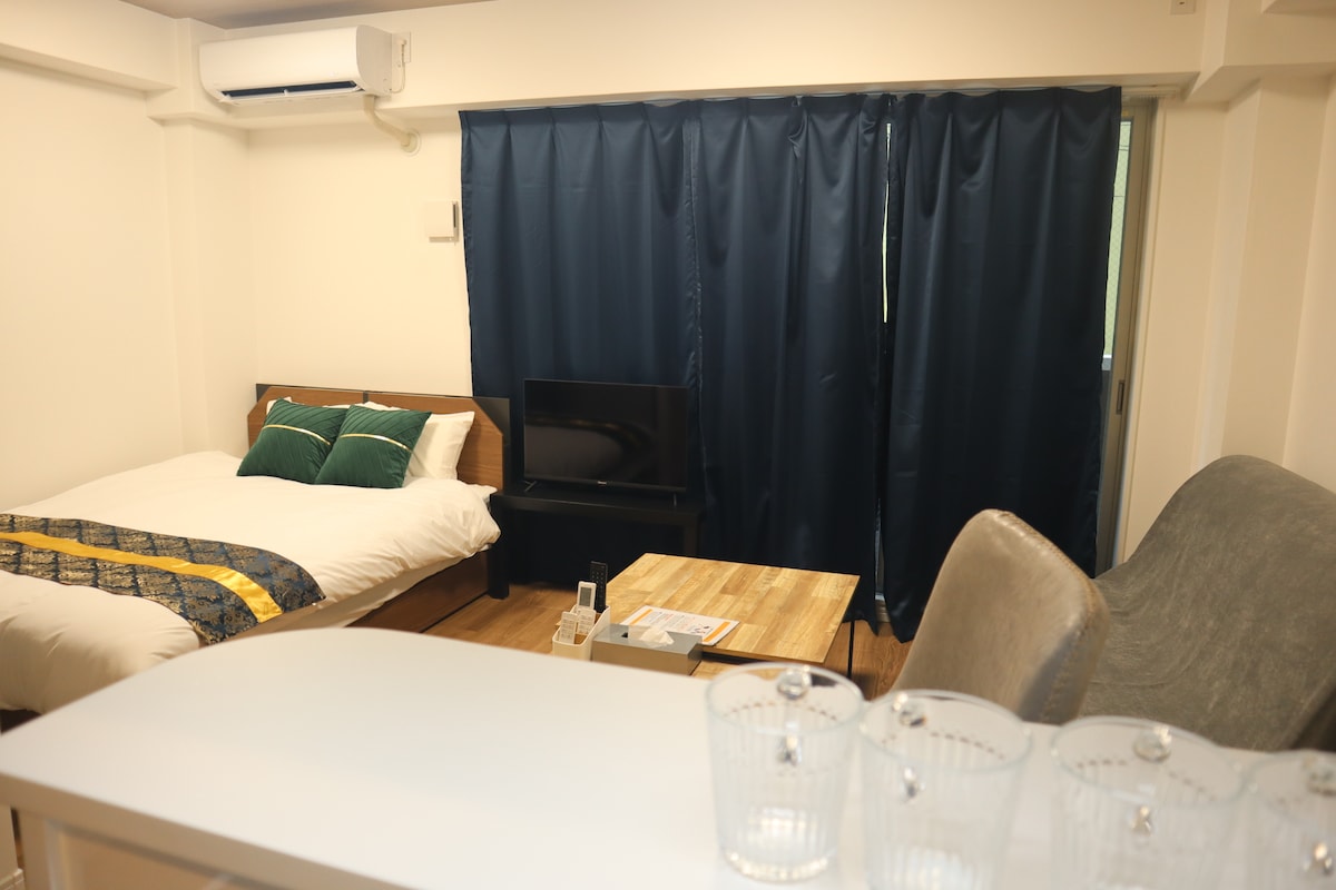 友達同士や家族にも嬉しいまるまる貸切の部屋 【物件のおすすめポイント】 ①最大4人まで宿泊可 ②新築マンション広々30㎡ ③敷地内駐車場有 ※台数に限りあり要予約 ④新今宮駅からUSJ(ユニバーサルスタジオジャパン)24分  ⑤ホテル内にフィットネスジム併設 ⑥無料荷物預かり可能(場所指定 ⑦24時間営業コンビニ・スーパー ⑧便利な1階共用トイレ 寝室2部屋 リビング 和室  ・ダブルベッド× 1(幅約140cm×長さ約200cm) ・ソファベッド×1(幅約140cm×長さ約200cm) ・洗面台 ・トイレ ・浴槽とシャワー ・冷暖房完備 ・wifiも完備 ・薄型テレビ ・バルコニー喫煙可能 ▼充実の設備 「ストレスフリーのキッチン設備」 ・2口ガスコンロ ・エアコン ・冷凍冷蔵庫 ・ケトル ・ティーカップ ・電子レンジ ・調理道具 ※調味料はありません。 ・食器 ・クローゼット 「衛生設備も充実」 ・ドライヤー ・アイロン ・トイレ ・タオル×バスタオル×人数分 ・お部屋専用洗濯機 ・物干竿 ・ジム ・共用トイレ