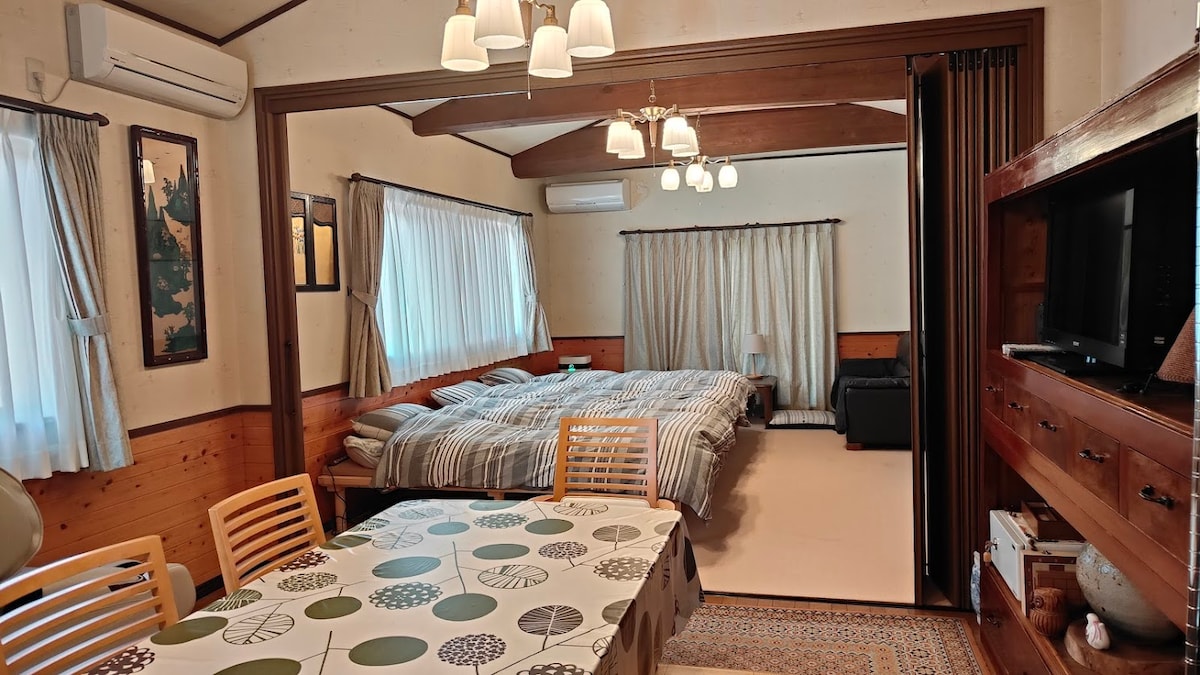 Our house is traditional Japanese style house. 150 years old and in a very quiet location. We are renting house. Not shared with other guests. There are 2 bedrooms(Tatami-room) and 1 living room, gameroom, bathroom, shower toilet, all of the room are only for you. *Children is free of charge if your children don't need a bed and break fast. There are air conditioners in bedroom and livingroom.