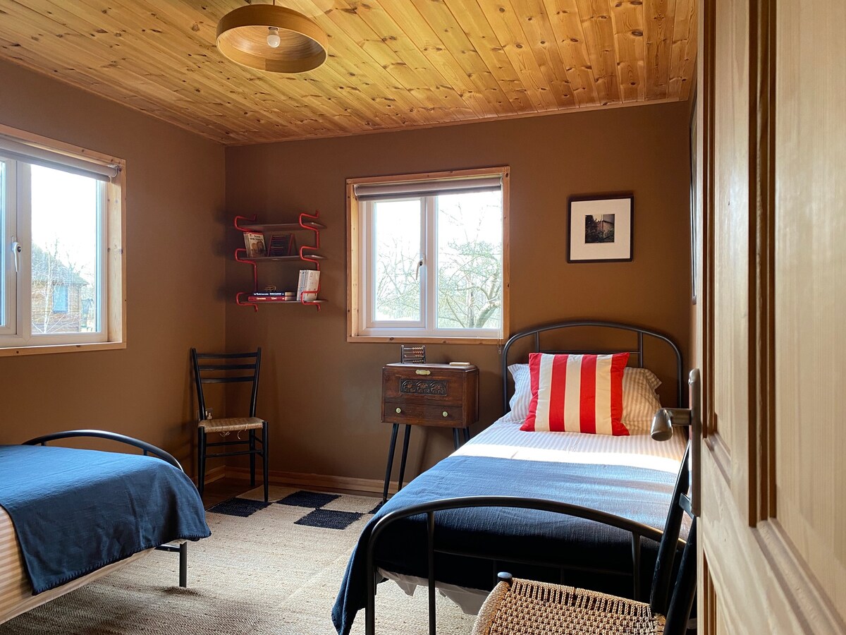 We would love to welcome you to our converted timber framed building (once a pig shed!) with modern furnishing, wooden floors and high ceilings. 1 double and 1 twin bedroom. Fully equipped kitchen, WiFi, Freeview TV, walk-in shower. Peaceful Kent countryside location, set in half an acre of garden, 1 mile from Tenterden. Great for weekend getaways, family holidays and an ideal venue for small business meetings.