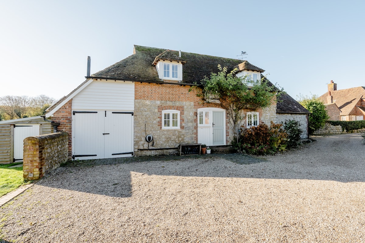 Very pretty converted barn in the heart of Kent. Completely private and self-contained providing you the ability to easily enjoy a socially distanced holiday. Take a long soak in our freestanding tub in the master bedroom; curl up on the super comfy sofa and indulge in our huge DVD collection; delve into the board game basket; enjoy the lovely bright living space; or cook up a storm in the well stocked kitchen. Wander through the lovely gardens and fields, or catch some rays on your very own sun terrace. For more images and recommendations check us out on instagram @the_oldbarn. You enjoy the whole cottage to yourselves - with your own front door so you can come and go as you please. There's free and very quick wifi accessible throughout. The large kitchen is equipped with most of the implements you'll need for your stay, including an oven, dishwasher, microwave, fridge freezer, washing machine and tumble drier. The contents of the welcome hamper varies seasonally, but always includes fresh bread, butter, milk and lots of other delicious bits. The cupboards are stocked with cereals, tea, coffee, spreads and basic condiments. There's a big open plan dining and living space. With a super comfy sofa (please keep the dogs off though!), DVD player (with lots of things to watch) and free-sat TV (over 200 TV channels). There is a toddler high chair in the dining area but if you require one suitable for a younger child please ask and we will do our best to accommodate. There are two big kingsize double bedrooms, with an en-suite bathroom (WC, sink and shower) in both. The bigger bedroom also has a freestanding bath within the room for a luxurious soak. Towels, cosy robes and bubble bath provided. There's a lovely garden which you're welcome to enjoy during your stay (as is your dog), complete with a table and chairs to eat outside if the weather allows! If you do bring your dog however please pick up after them! You enjoy the whole cottage to yourself - with your own front door and key so you can come and go as you please. I'm very responsive to airbnb messages and texts, so do contact me on either with any questions. I'll always be in touch prior to your arrival to make sure you're clear on check in process and directions. We'll be there regularly during your stay for anything you need and recommendations, but there's also a folder full of information in the cottage. The Old Barn is situated in the lovely village of Great Chart with two fantastic pubs just a minutes walk away. It's surrounded by wonderful countryside, historic buildings, great shopping, brilliant beaches, great places to eat & vineyards aplenty. Great Chart is less than 10 minutes drive from Ashford International Train Station where there’s usually plenty of taxis available. Trains leave approximately every half an hour to and from London St Pancras and take just 37 minutes (there are slower trains to other London stations too). You can also board a train at Ashford to Paris, which takes only 2 hours. The village is 10 minutes from the M20, there is parking for one car at the cottage, and plenty more free parking on the Street. We are also 30 minutes drive to Folkestone which is just a 35 minute channel crossing to Calais, and 45 minutes to Dover where the ferry departs for there also, so the perfect location if you’re breaking up the drive to France! There is free and very quick wifi available throughout the property. Our standard check in time is anytime after 4pm, and check out is by 10am on the day you leave. If you'd like to check in earlier or check out later, this is sometimes possible, but there is an additional fee of £10 per check in/out which is payable in cash on arrival. Sadly we can't always offer early check in or late check out, so please contact me to confirm availability. All early check ins or late check outs have to be agreed with me prior to arrival. The Old Barn is situated in the lovely village of Great Chart with a fantastic pub just a minutes walk away. It's surrounded by wonderful countryside, historic buildings, great shopping, brilliant beaches, great places to eat & vineyards aplenty.