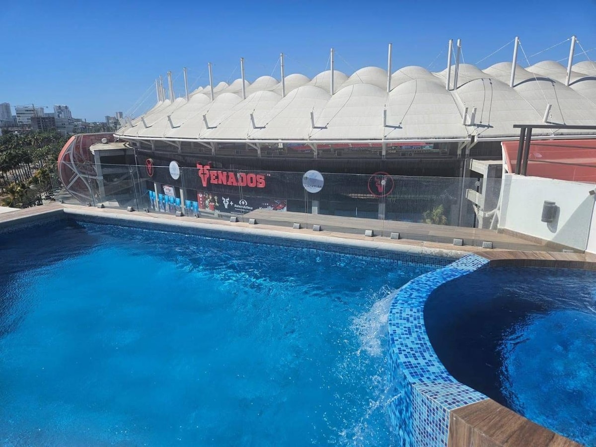 ✨ Vive Mazatlán desde la mejor ubicación ✨ Hospédate en un departamento equipado, moderno y acogedor con vista al Estadio de Béisbol. Ideal para familias o amigos que buscan comodidad y cercanía a todo. Incluye: 🏊 Alberca 📶 Wi-Fi y cable 🍳 Cocina equipada 🚗 Estacionamiento privado gratuito 🛗 Elevador Frente al Estadio Teodoro Mariscal y a minutos del Gran Acuario, playas y restaurantes. ¡ Reserva y disfruta Mazatlán como se debe! 🌊 !
