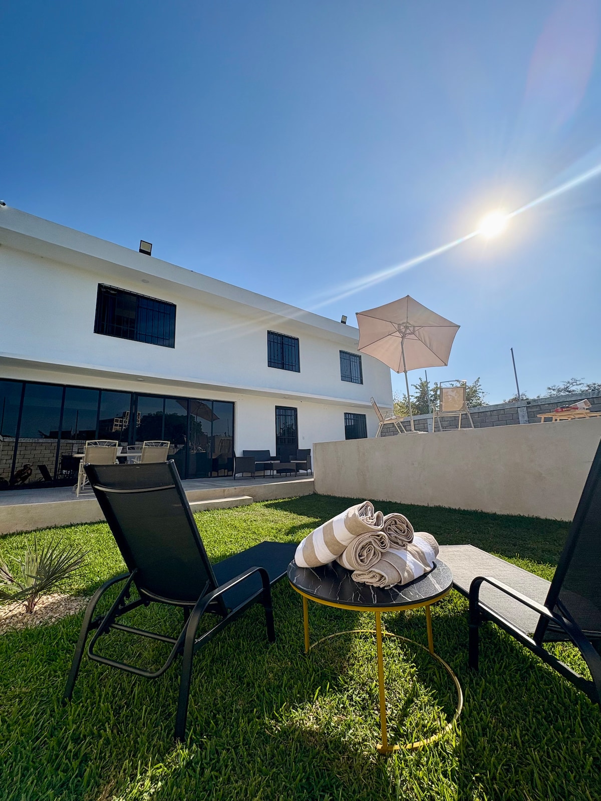- Crea recuerdos inolvidables en este alojamiento único y familiar. - La casa cuenta con alberca privada, tobogán, parrilla, gran espacio, seguridad, aire acondicionado y comfort. - Cuenta con 2 recamaras en PB con acceso personas discapacitadas. Y 3 recamaras en primer piso. - Se incluye servicio de aseo de 10:00 am a 3 pm. - En caso de requerir que la persona les apoye despues de las 3 pm y hasta las 6pm seria con un costo adicional.