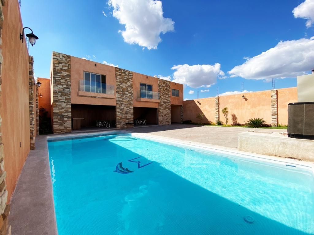 Relájate en este espacio tranquilo ideal para pasar unos días de descanso. A 10 minutos del centro. Este espacio cuenta con lo mejor para su hospedaje, cuenta con 4 habitaciones y 2.5 baños, cochera para 3 carros. El patio cuenta con 2 baños, 1 cuarto con regadera, parilla y mobiliario del patio. La alberca tiene agua climatizada.