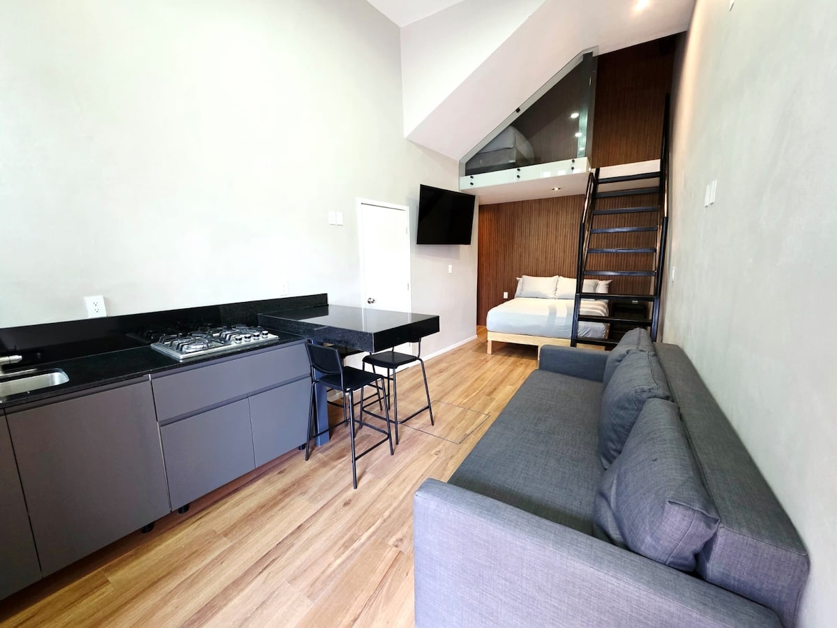 Departamento de una recamara con baño completo, Aire acondicionado , wi-fi , cocina totalmente equipada y sofá cama en la sala de estar, sin precios adicionales por limpieza. Se encuentra en la mejor zona de la ciudad cerca de restaurantes, bares y entretenimiento nocturno. A 5 minutos del centro de la ciudad.
