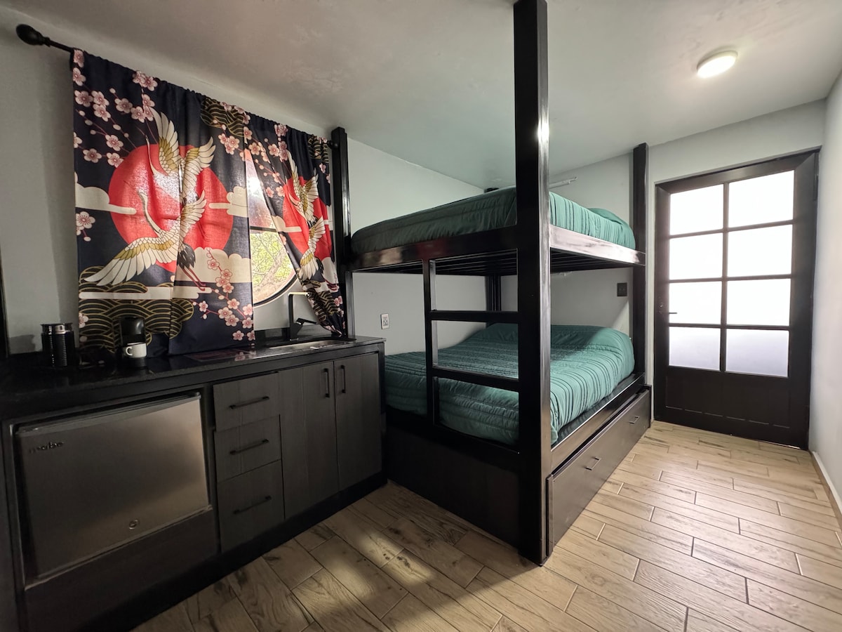 OESTE es un espacio ubicado justo en el área oeste de la Finca, en un ambiente cálido y confortable. Amplia habitación que cuenta con dos camas individuales, cocineta, y baño completo privado. Cuenta con una terraza compartida desde la que podrás apreciar las caballerizas y el maravilloso espectáculo del amanecer. Ideal para compartir con familia o amigos.