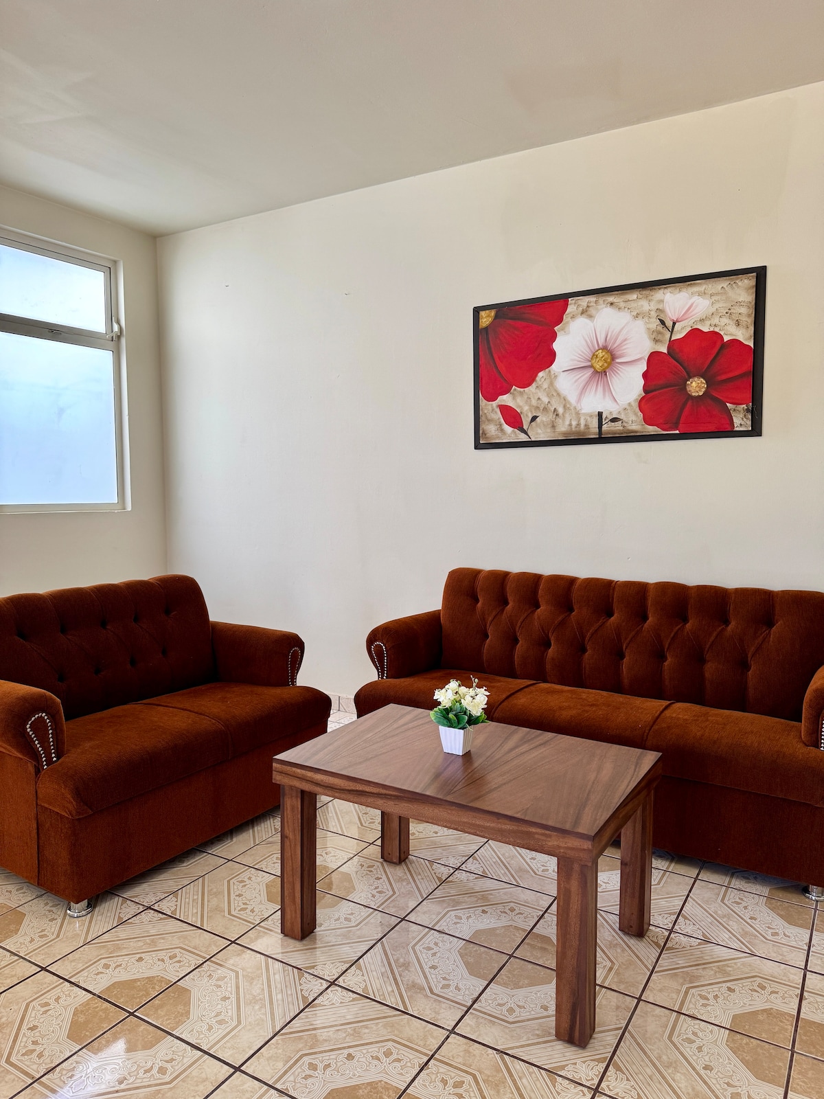 Step into this spacious apartment that is centrally located in the heart of La Capilla de Guadalupe. This apartment is located on the 2nd floor with a private & secure entrance. You have 3 bedrooms with full size beds, a spacious bathroom and a large living and dining room. There is a washer and dryer located inside the apartment for your convenience. The apartment is located near a small grocery. Distances: Tepatitlan: 25 minutes San Ignacio: 15 minutes Arandas: 25 minutes