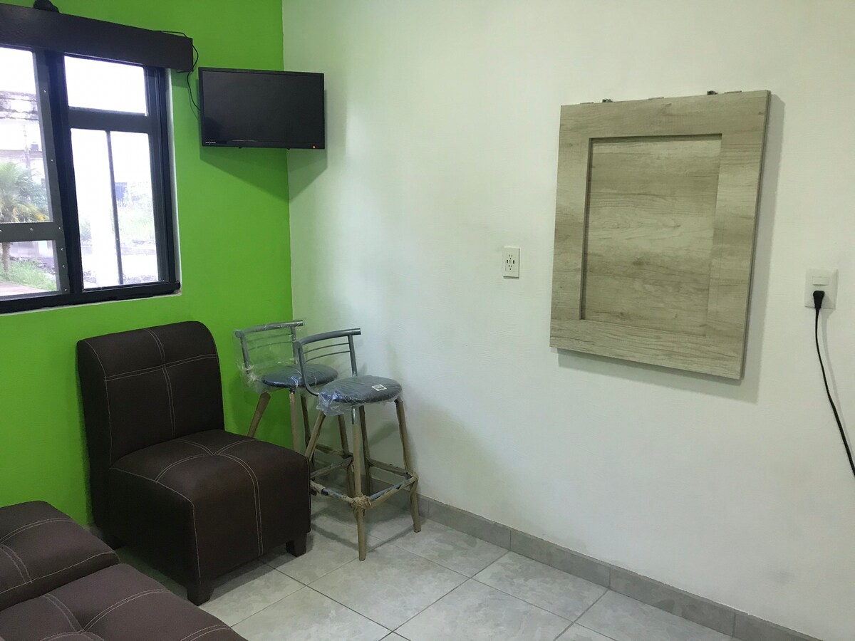 Departamento entero de una recamara con cama matrimonial, cuenta con excelente ubicación, su baño completo, cocina integral, A/C. servicio de Internet, TV con Netflix. Muy cerca de plaza Alica, Walmart, y los mejores Restaurantes de Mariscos. Les va encantar ¡¡¡¡