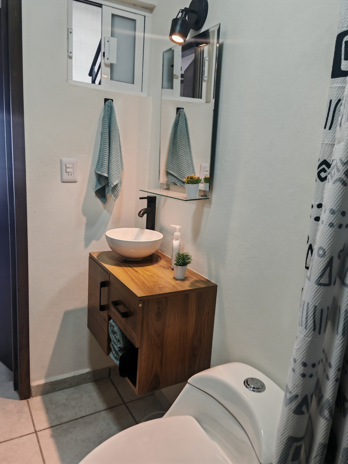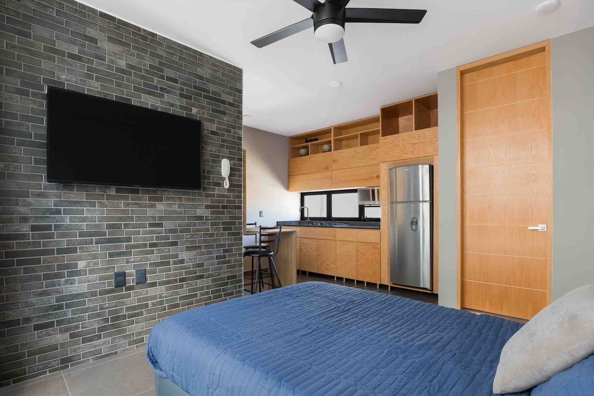Disfruta de la sencillez y la comodidad en este espacio tan tranquilo y elegante; cuenta con Minisplit, comedor, cocineta, estufa, refrigerador y baño completo totalmente independiente. Wifi Gratis.