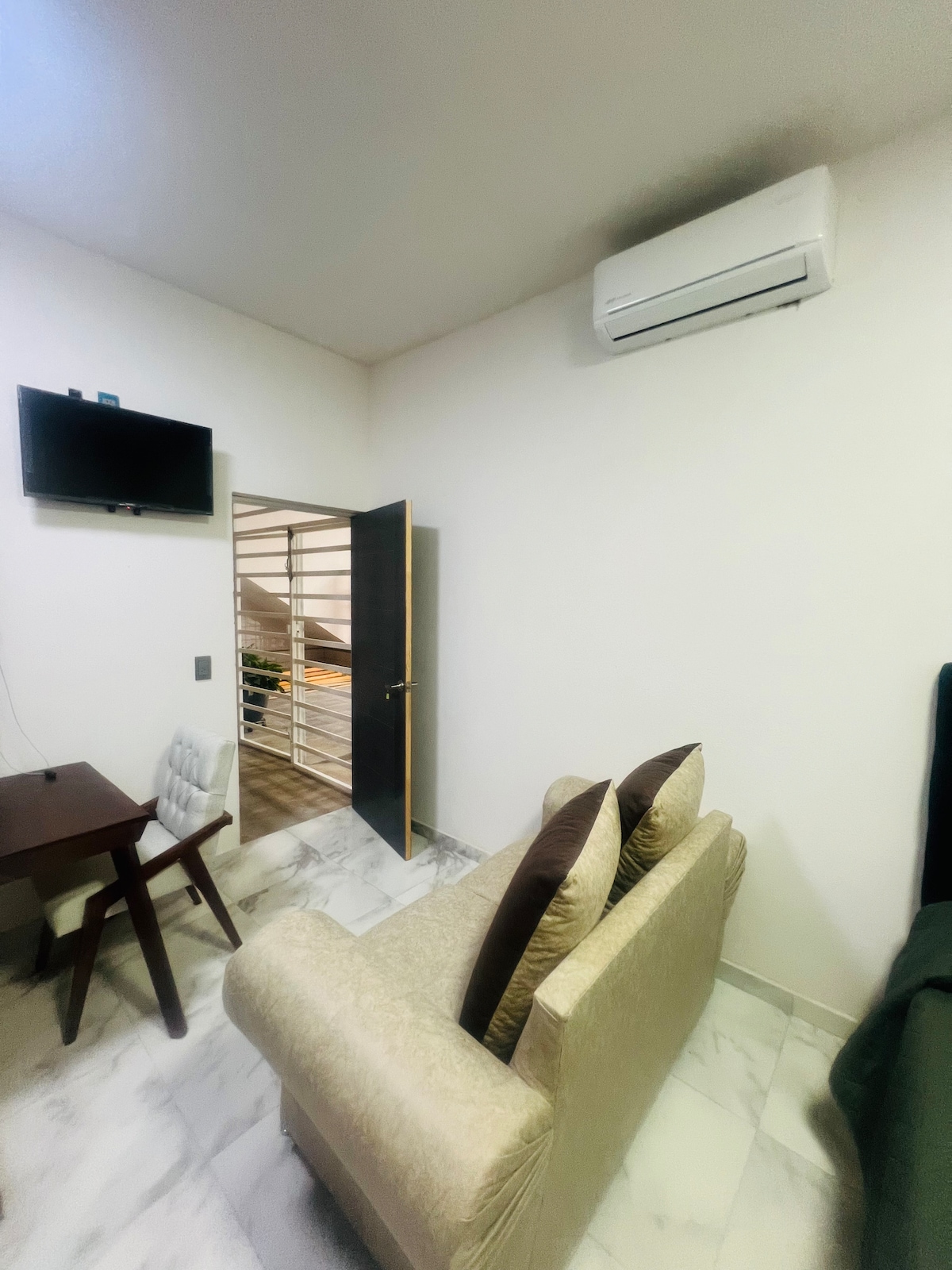 Este céntrico departamento, ubicado en la planta alta, permite una estancia sin interferencias y tiene acceso libre y en cualquier momento por un restaurante que está en la plata baja, mismo que ofrece desayunos y comidas. Construido para que 6 personas duerman cómodamente, preparen sus alimentos y hagan homeoffice; tiene un baño completo propio y espacio suficiente para disfrutar de estadías agradables así como desplazarse en poco tiempo y a pie hasta los lugares más importantes de la ciudad.