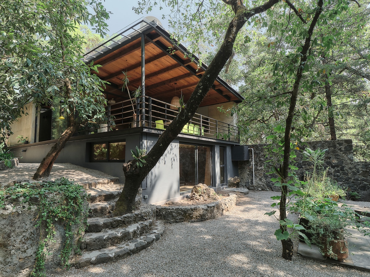 Enjoy the sounds of nature when you stay in this unique place. The "CASA NIM" studio is a design space on the road to Santo Domingo, 20 minutes from downtown Tepoztlán. Day and night the place is powered by solar energy and high-speed internet from Starlink (SpaceX). Swimming pool with solar heating and boiler (additional price), orchard, fruit forest, unparalleled views. Security 24hrs. Cleaning and other services are available to consult when booking. Suitable for 2 guests maximum.