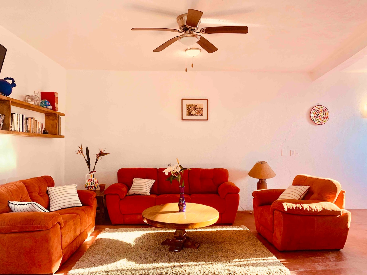 As featured on top 10 Netflix hit - “World’s Most Amazing Vacation Rentals!” Tranquil Tepoztlan destination but walking distance to center of town and the Tepozteco pyramid. Incredible 360 degree views of the Tepozteco valley. This is the home of Chef Ana Garcia and La Villa Bonita Culinary Vacations and is designed as a culinary retreat. We are in the house or have a manager on site to make your stay as enjoyable as possible! Now with HEATED POOL!