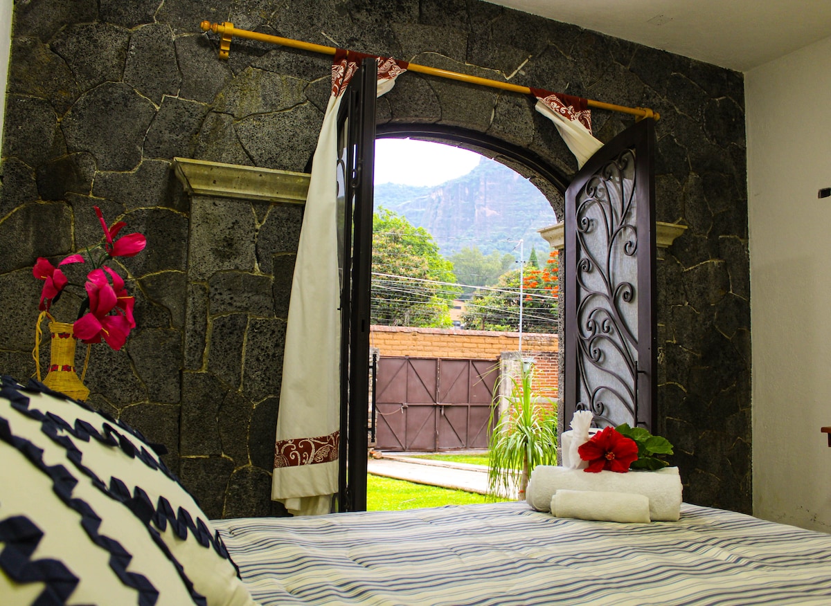 Este lugar lleno de estilo está cerca de todo lo imprescindible con detalles únicos por el diseño de la habitación, aparte de tener lo necesario para poder descansar cuenta con terraza privada así como una vista increíble a todos los cerros de Tepoztlán incluyendo el icónico cerro del Tepozteco, el lugar se encuentra a 5 minutos del zócalo municipal caminando.