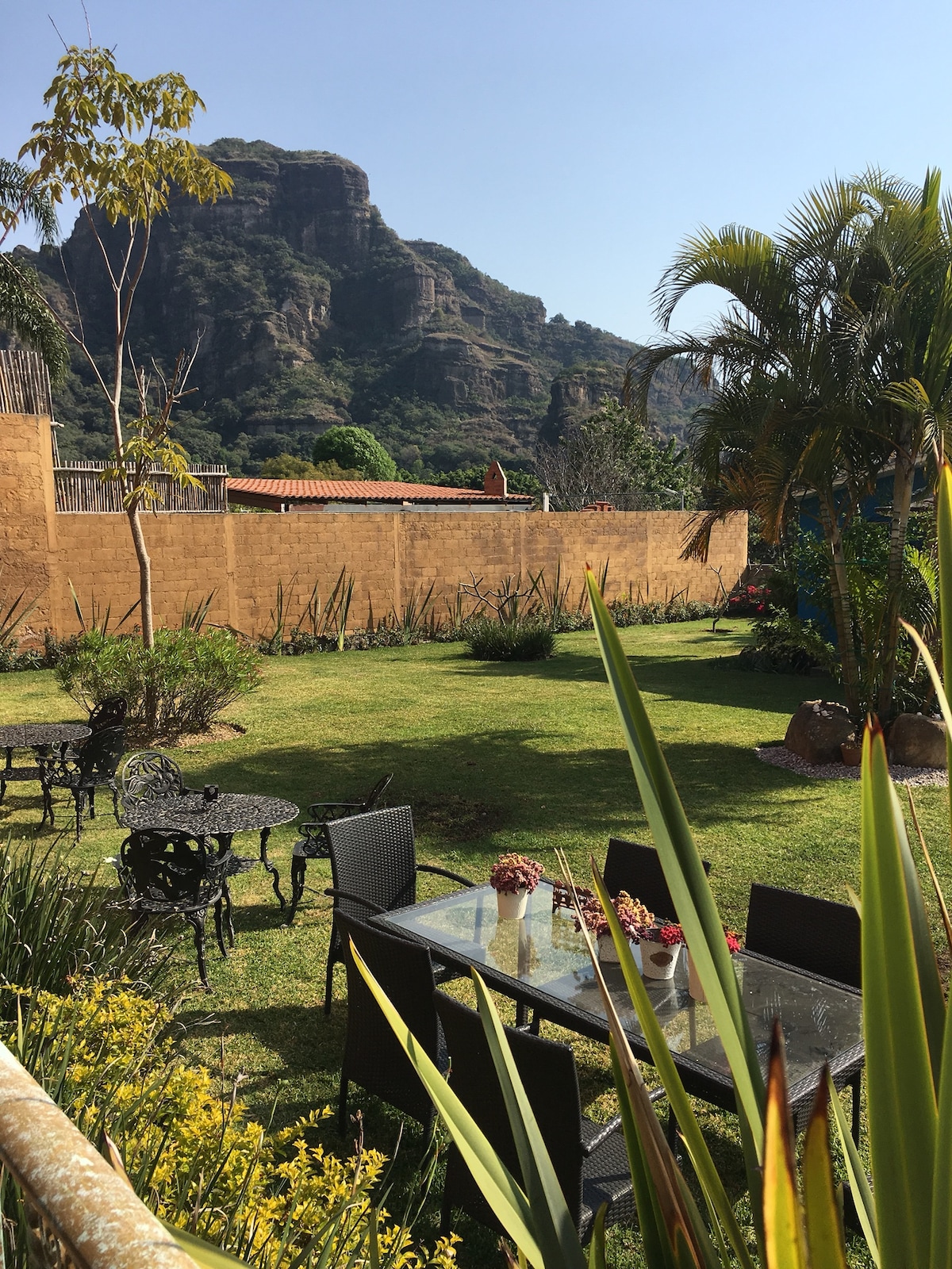 Tepoztlán está muy cerca de la CDMX, y de Cuernavaca. Hay un convento del siglo XVI. Un Mercado, restaurantes, tiendas, Ahora no se pueden hacer paseos en la montaña, se está recuperando tras varios incendios. Para pasear está la pirámide, y los Venaditos. La casa está en un Barrio original, local, y amigable. A 10 minutos a pie del centro. El ambiente es familiar y casual. Con un jardín lleno de flores de colores, y una refrescante piscina. El Loft tiene una Terraza privada y linda vista.