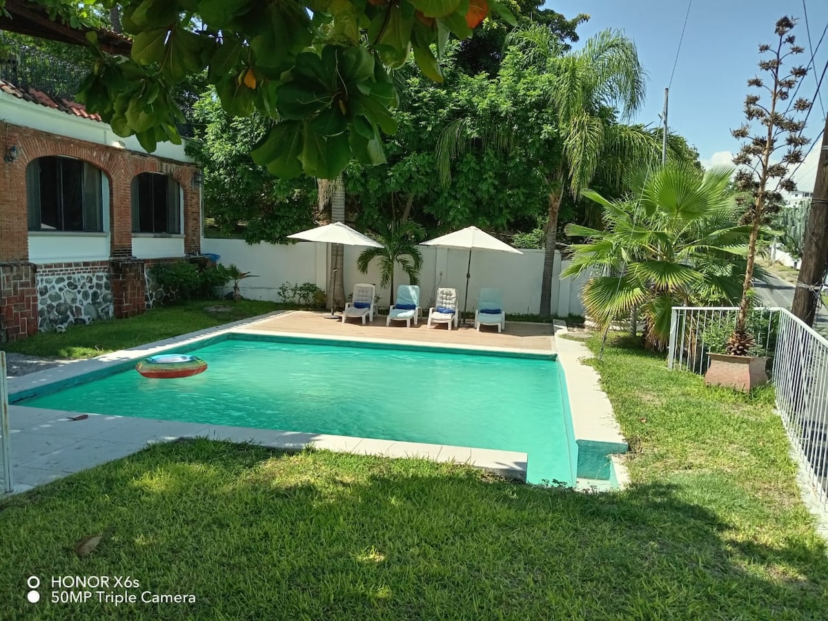 Está situada en un agradable fraccionamiento privado, a 20 minutos de la zona arqueológica de Xochicalco, Tequesquitengo, Haciendas, del centro de Cuernavaca y a 40 min. de Taxco, de los bellos Jardines de México (los más grandes de América), es una excelente opción para hospedarse con amigos de fin de semana o en largas estancias de plan familiar. Servicios incluidos.