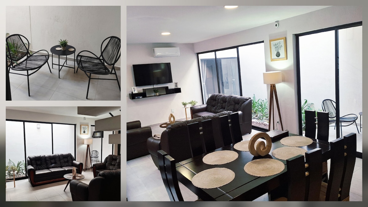 Maravillosa residencia en la ciudad de Tequila, Jal. Cuenta con todos los servicios para una hermosa estancia en familia. Excelente para un viaje relajante y placentero. Cuenta con amplio jardín, terraza-bar, tres acogedoras habitaciones con baños completos, SmartTV con servicio de cable, aire acondicionado, estacionamiento, espacio para convivencia familiar, sala, cocina, comedor, bar, asador y bocina para karaoke.