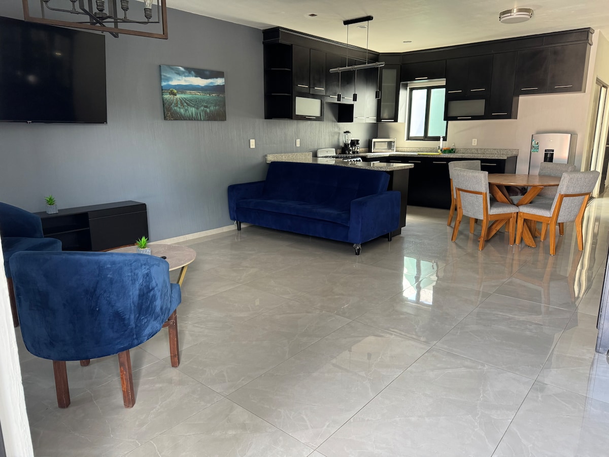 Ubicado a solo unos pasos del centro del Pueblo Mágico de Tequila, si a solo media cuadra. Ideal para quienes buscan comodidad y ubicación privilegiada. Cerca de restaurantes, tiendas, y todo lo que ofrece este encantador Pueblo Mágico. Vive y disfruta de la belleza y cultura de Tequila. Para su mayor comodidad cuenta con baño en cada cuarto(2) y 1/2 baño en la sala, cocina equipada, estacionamiento techado y gratuito a 50 mts del departamento, amueblado, 3 camas matrimoniales y 1 individual.
