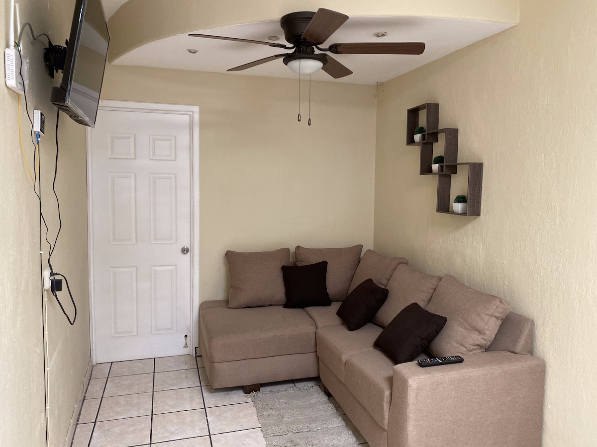 Relájate en espacio totalmente nuevo, a solo 3 cuadras del centro histórico de Tequila. Ideal para pareja o viajeros que buscan comodidad, limpieza, ubicación y privacidad. 🏡 ¿Qué incluye? • Cama matrimonial cómoda • Smart TV + cable • Aire acondicionado y WiFi • Cafetera, microondas, frigobar • Baño amplio y moderno Este espacio no es solo un lugar para dormir, es un pequeño respiro con todo lo necesario para una visita perfecta a Tequila. 🧡 Tu seguridad y descanso, garantizados.