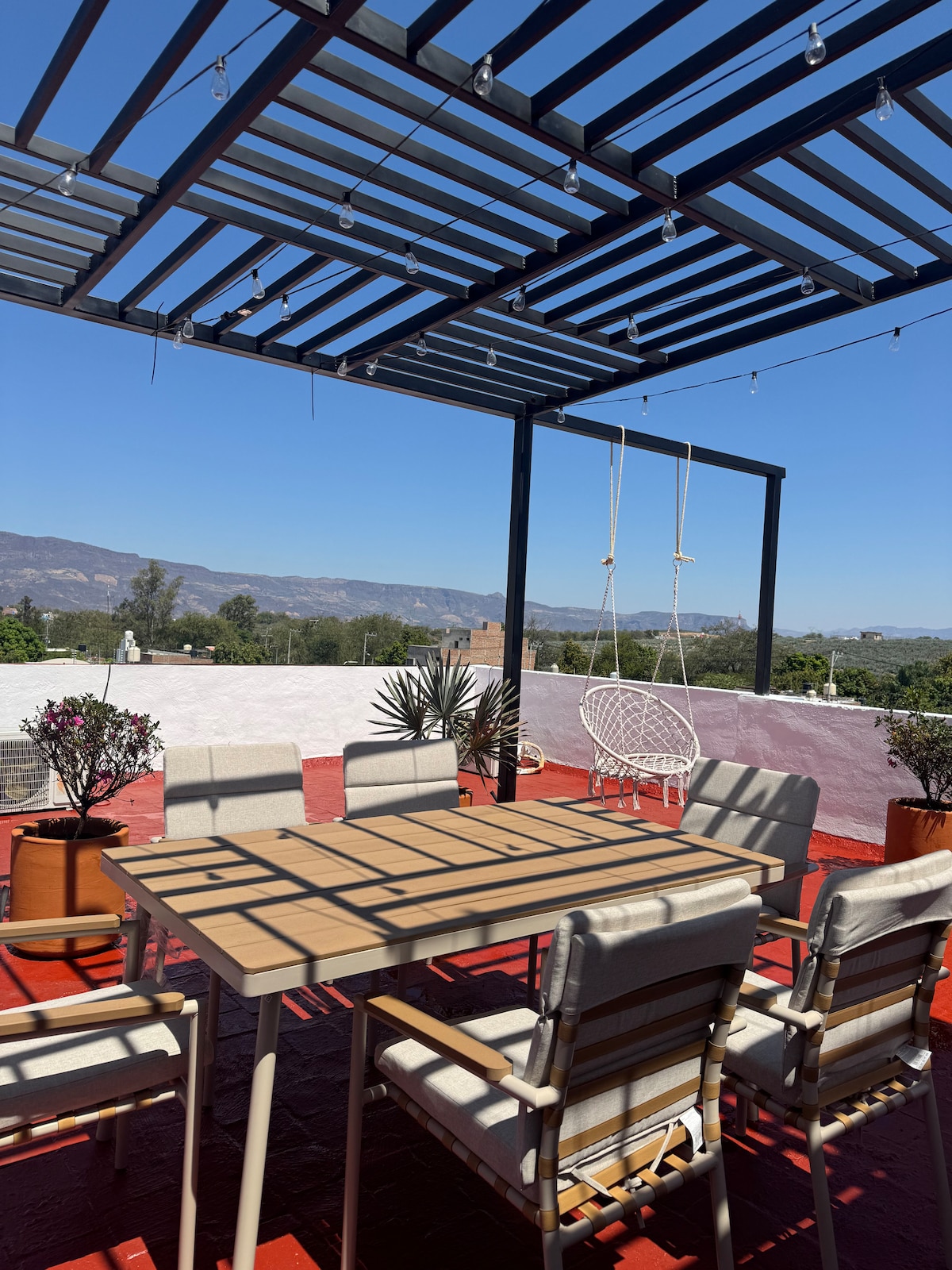 Escape to a modern and peaceful space just minutes from downtown Tequila. Enjoy our private rooftop terrace, perfect for relaxing at sunset after exploring the town’s famous distilleries, restaurants, and charming streets. The apartment offers comfort and privacy, along with covered parking for your convenience and peace of mind.