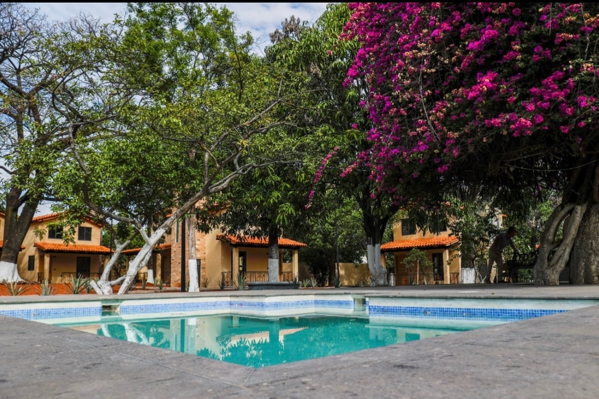 Pequeño complejo para descansar en Tequila Jalisco, cuenta con lo siguiente : 6 unidades independientes cada una con su baño, aire acondicionado, ventilador de piso, smart TV, cable, internet, cafetera, plancha y secadora de cabello. 3 Frigobars (dentro de 3 recamaras c/u) 1 Microondas (dentro de 1 recamara) 1 Alberca 1 Asador 1 Hielera 1 Terraza Estacionamiento para 3 vehículos tamaño promedio. NO cuenta con COCINA. La terraza es en exterior Hasta 15 personas. BIENVENIDO