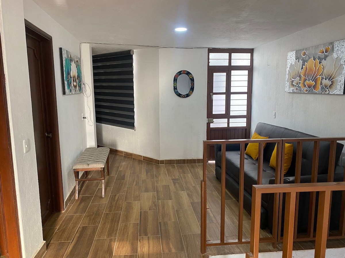 Tu familia estará cerca de todo si te hospedas en este alojamiento céntrico y agradable, ubicado a una cuadra de la plaza principal del pueblo y a media cuadra de la avenida principal, este espacio se encuentra en el centro de la ciudad por lo que es fácil y accesible su llegada además cuenta con todos los servicios, agua caliente, internet, utensilios de cocina y es de los pocos lugares con cochera en el centro del pueblo.