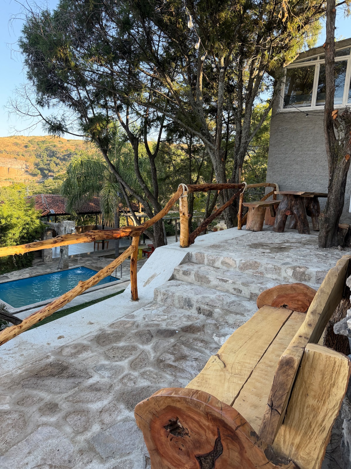 Pequeño complejo para descansar en Tequila Jalisco, cuenta con lo siguiente : 6 unidades independientes cada una con su baño, aire acondicionado, ventilador de piso, smart TV, cable, internet, cafetera, plancha y secadora de cabello. 3 Frigobars (dentro de 3 recamaras c/u) 1 Microondas (dentro de 1 recamara) 1 Alberca 1 Asador 1 Hielera 1 Terraza Estacionamiento para 3 vehículos tamaño promedio. NO cuenta con COCINA. La terraza es en exterior Hasta 15 personas. BIENVENIDO
