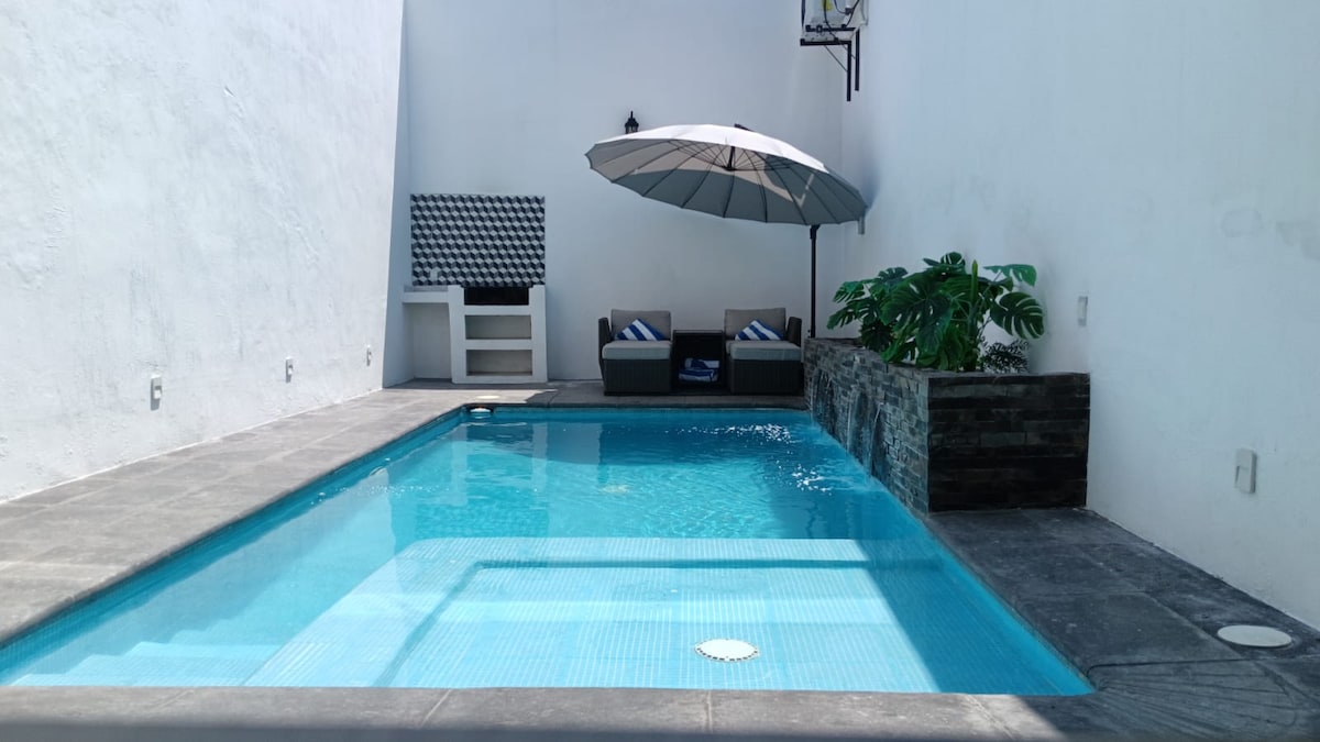 RESERVA CON NOSOTROS Book with us Hola! Somos José y Jenny ● 📣LEE APARTADO DETALLES A DESTACAR Pregúntanos! •NO SE PERMITEN FIESTAS• HORARIO ESTRICTO SILENCIO 12 AM • PLEASE READ ALL THE INFORMATION, and ask all your doubts before booking. This is our base rate for 6people. • Esta es nuestra tarifa base 8 pps, pero caben hast 13 personas. A/C en habitaciones, a 3 cuadras del centro histórico. Contamos con Terraza con alberca y Cochera para 2 carros. Calefacción ambiental alberc 31 grados