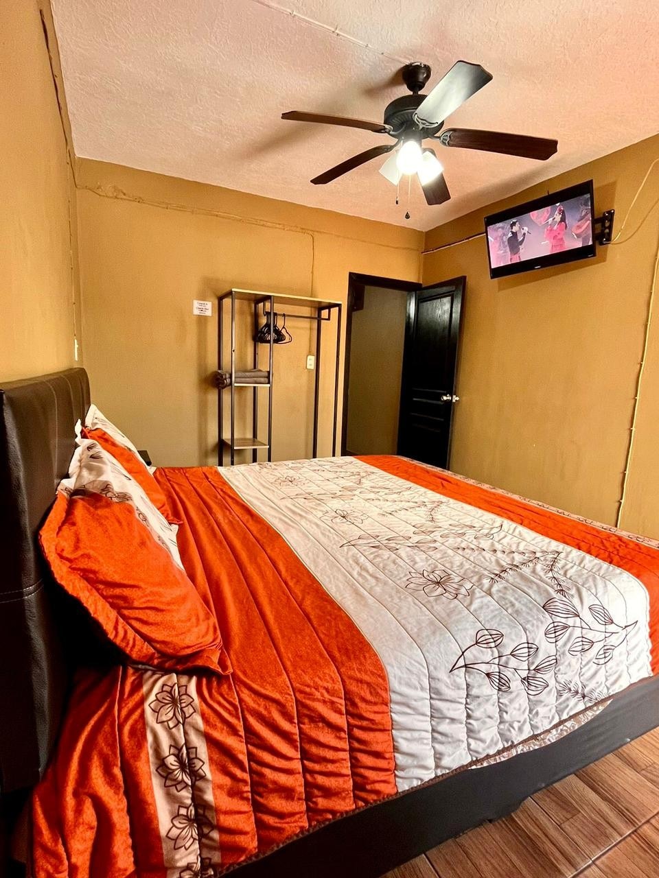 Nuestro alojamiento está diseñado para familias o grupos que buscan un lugar para refrescarse después de un largo día de haber paseado por Tequila proporcionándoles una buena relación precio-calidad. Habitación matrimonial 🛏️: Closet, a/c, ventilador de techo, buró, toallasSmart tv(Netflix). Habitación king size: Ventilador de techo, ventilador de piso, clóset, toallas, plancha, buró, ventana, puerta al balcón, smart tv(Netflix). Baño 🚽: Regadera, puerta de baño, jabón, shampoo, papel.