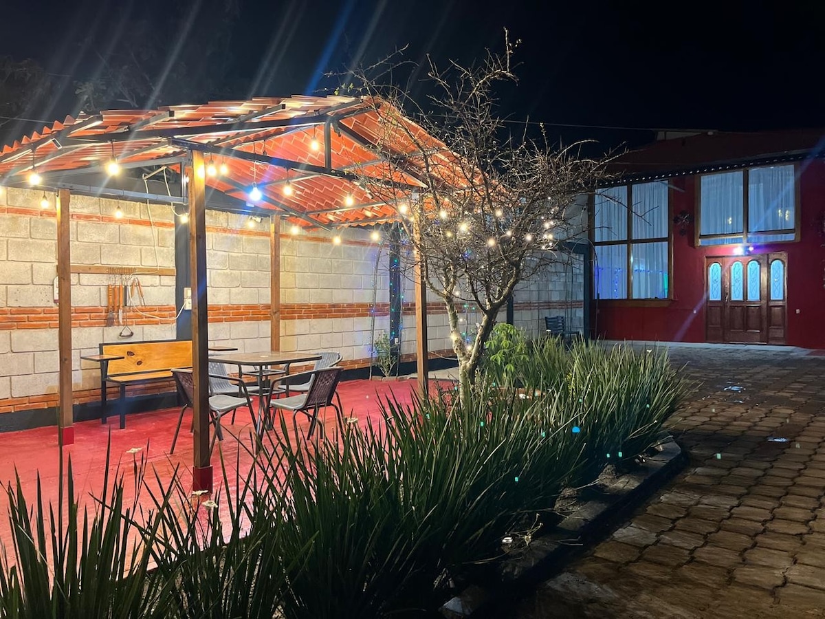 Es un hogar acogedor donde encontraras la tranquilidad que buscas para tu fin de semana y al mismo tiempo puedes salir a turistear o disfrutar de rica comida y vinos, tenemos viñedos muy cerca. Desconecta de tus preocupaciones en este espacio tan amplio y sereno. contamos con una terraza por el momento Rustica y al aire libre para disfrutar de la vista.