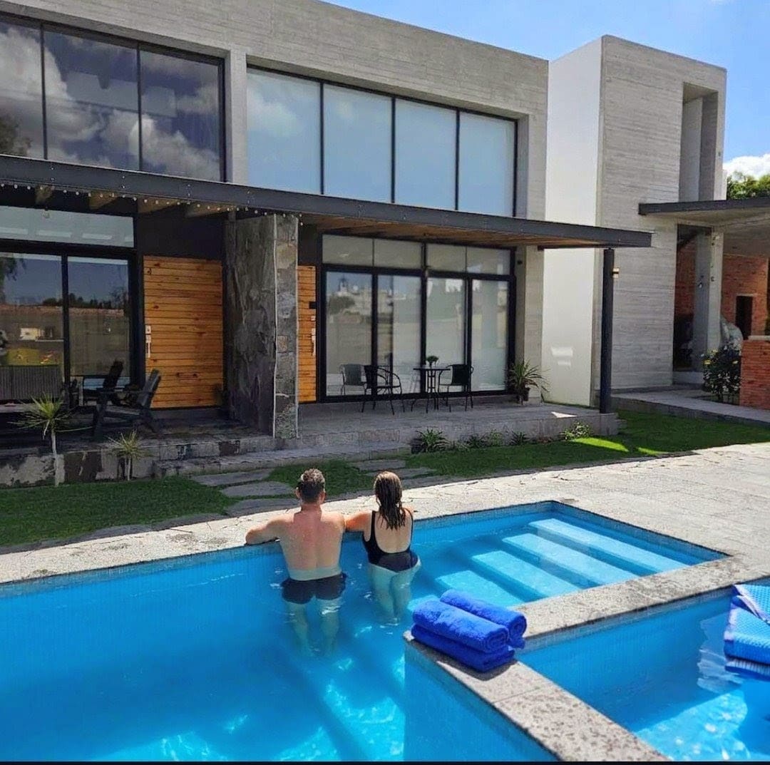 Preciosa y cómoda Casa Loft en un Residencial muy bonito, seguro y tranquilo! Muy cerca del Centro de Tequisquiapan, fácil acceso a lugares de interés de este precioso pueblito mágico! La Alberca climatizada con panel solar justo en frente de la Casa, ofrece una experiencia muy agradable. Con nosotros encontraras un lugar que exhala una paz increíble! • Diseño contemporáneo y espacios luminosos crean un ambiente acogedor para familias y amigos • Cómoda Terraza al frente con mobiliario exterior