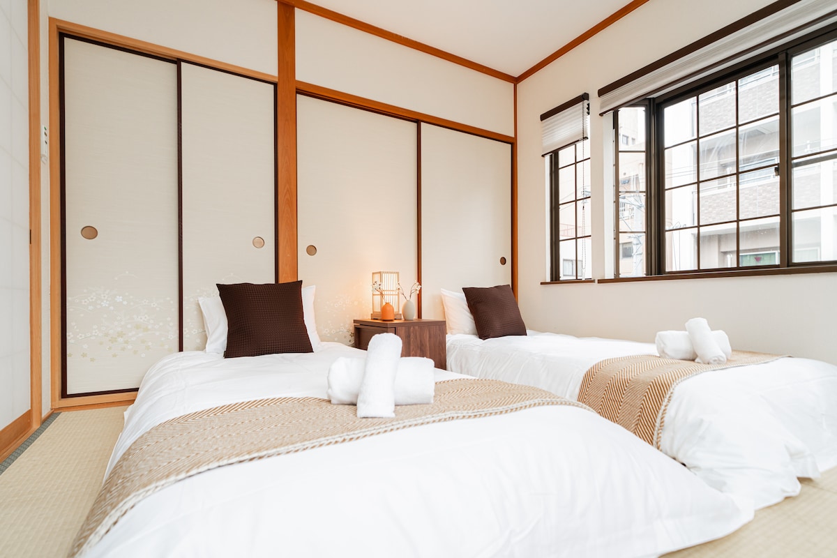 川House今里•双床房•地铁千日前线步行10分钟•近铁难波线7分钟•电车到大阪城公园便利