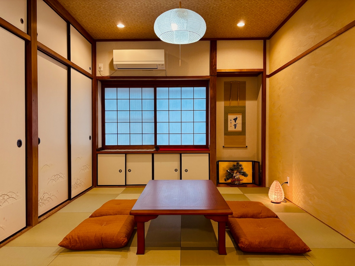[大阪寺田町高档套房] ※已采取除菌对策! 一栋两层传统日本房屋,现代装修风格,带有一个日式花园和一个豪华浴缸。 步行 5 分钟即可到达 JR 大阪环线的寺田町站。 乘坐火车的话,只需 1 分钟即可到达天王寺, 6 分钟到达难波,35 分钟到达关西国际机场。 只需一次换乘,即可轻松到达日本环球影城、京都、奈良等大多数景点。 - 最多可住 8 人 - 带有设备齐全的厨房 - 私人住宅 - 附近有超市和各色餐馆 - 免费手机 WIFI
