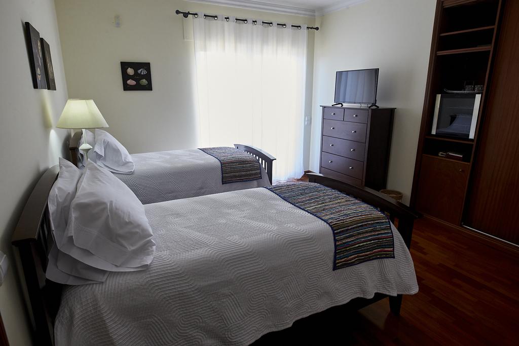 Luxury & Comfort in Our Twin Room with dedicated outside bathroom . Experience modern elegance in our bright twin room with a shared patio. Just 100m from Silveira’s beach and a 15-min walk to the city centre, enjoy beachfront living with shared luxuries like a pool and lounge. Fully equipped kitchen, A/C, Wi-Fi, and self-check-in ensure convenience. Plush linens, essentials, and free parking add to your comfort. Perfect for remote workers or friends. Book now for a stylish and relaxing stay!