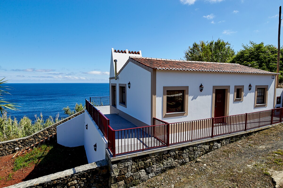 Recently rebuilt house, located in one of most beautiful bays in the Azores. Nestled on the slope of the Quatro Ribeiras, it offers a unique view of both the sea and the rocky escarpment of the bay. Fully equipped with two bedrooms (one suite), two bathrooms, an open concept kitchen and living room, heating stove, balcony and outside space with barbecue and fire pit. Free private parking. Clean and Safe seal. Get ready for an unforgettable stay!