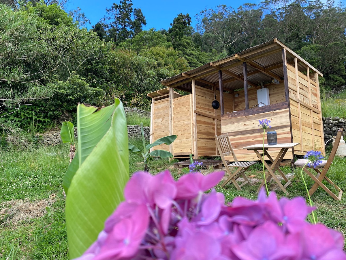 Banana Eco Camp is a Glamping located in the middle of a banana plantation. Here you can relax and enjoy nature at its finest. The campsite also has its own organic coffee shop. There is a lot within walking distance, such as the city of Angra do Heroísmo, restaurants and seaside pools. This cabin is equipped with one double bed with an outdoor shared kitchen and toilet In the glamping are BBQ, campfire areas and outdoor hanging nets.