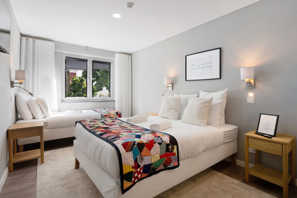 Immerse Yourself in Luxury and Comfort with Our Queen/Twin Room with Private Bathroom *Modern and Refined Accommodation* Experience the elegance of our bright twin room, featuring a shared patio. Enjoy contemporary design and high-end amenities for a truly comfortable stay.