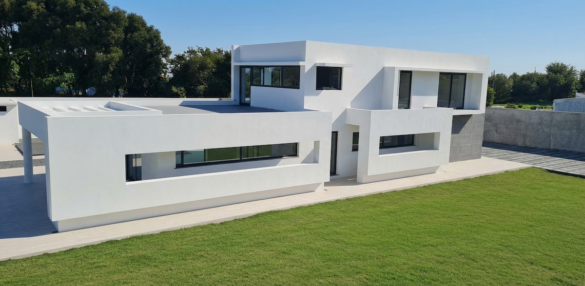 Construímos esta casa de raíz para a nossa família. Foi elaborada por um arquiteto com vasta experiência e construída com charme, qualidade e a simplicidade de quem gosta de estar na natureza. Decidimos alugá-la nas férias, e esperamos encontrar hóspedes que possam desfrutar e cuidar dela. Fica na Serreta, um lugar mágico, ao lado de uma floresta magnífica, onde há muitos trilhos, um parque deslumbrante, muitas vaquinhas, uma paisagem sem igual e um pôr-do-sol que varia de tom a cada dia.