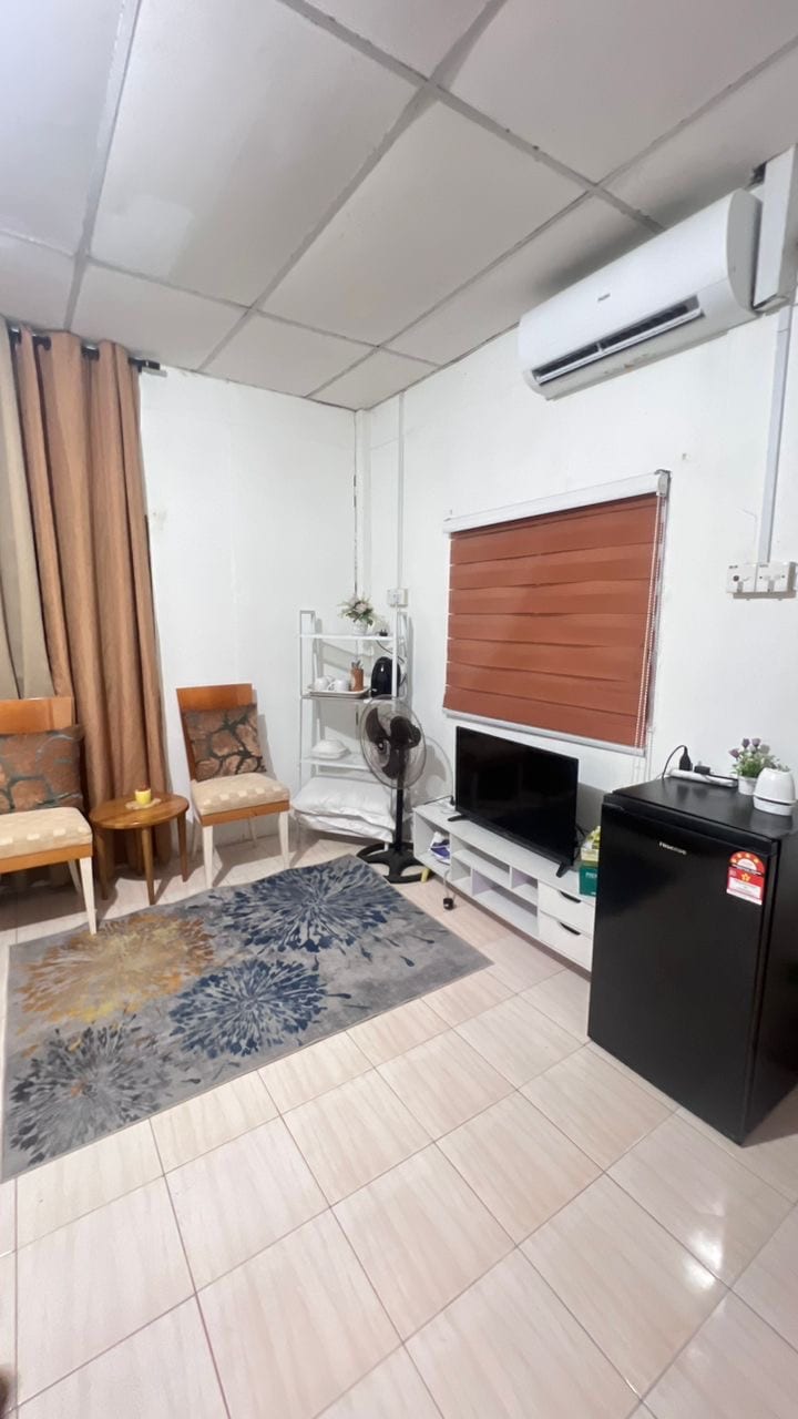 STUDIO concept, hence no room. All in ONE space. -2 double beds (4 adults) + 1 extra matress (upon request), -kitchen, -bathroom/toilet, -TV, -Internet (500 mbps), -Netflix, - 4 towels, - Iron and iron board. - Located at Mengabang Telipot, close to MRSM KT, IPG, UMT, UNISZA, Pok Nong Celup Tepung, Keropok Ikan Ssaje and near to the beach. - 25 min to Bandar Kuala Terengganu, -15 min to the Airport, - 20 min to Merang Jetty for Redang