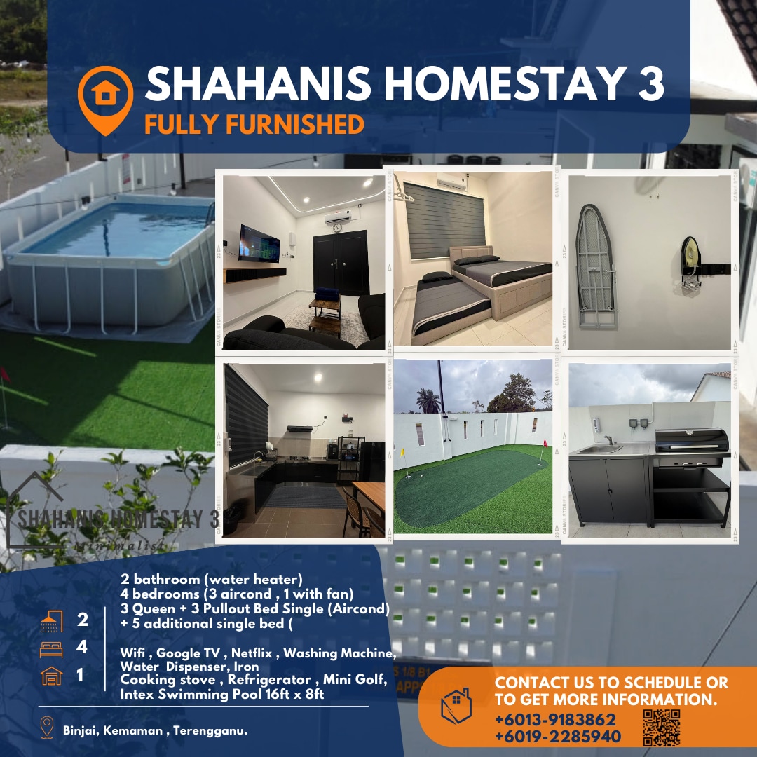 Homestay with 3 bedrooms + 3 bathrooms. Strategic location, which is located not to far (Pantai Batu Buruk/ Pantai Teluk Ketapang), HSNZ, UMT, UNISZA, and Sultan Mahmud Airport. Ideal for those on vacation with family, attending convocations, student registration, and leisure activities. There are also a lot of local restaurants nearby. D'Umara Homestay is house which is suitable for couples, business travelers, families with kids and big groups (8 adults).
