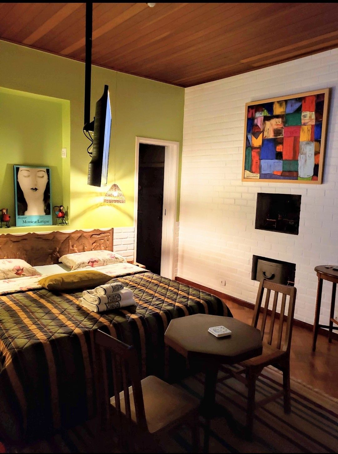 Charmosa e confortável suíte, conta com uma maravilhosa "casa de banho" (banheiro). Ampla suíte, aconchegante e única! Conta com todos os itens para o conforto dos nossos hóspedes, como macia cama king size, mesinha com cadeiras, cômoda, armário, tapetes, smart tv 40 giratória, decoração especial. O banheiro é um caso à parte, enorme e muito charmoso!