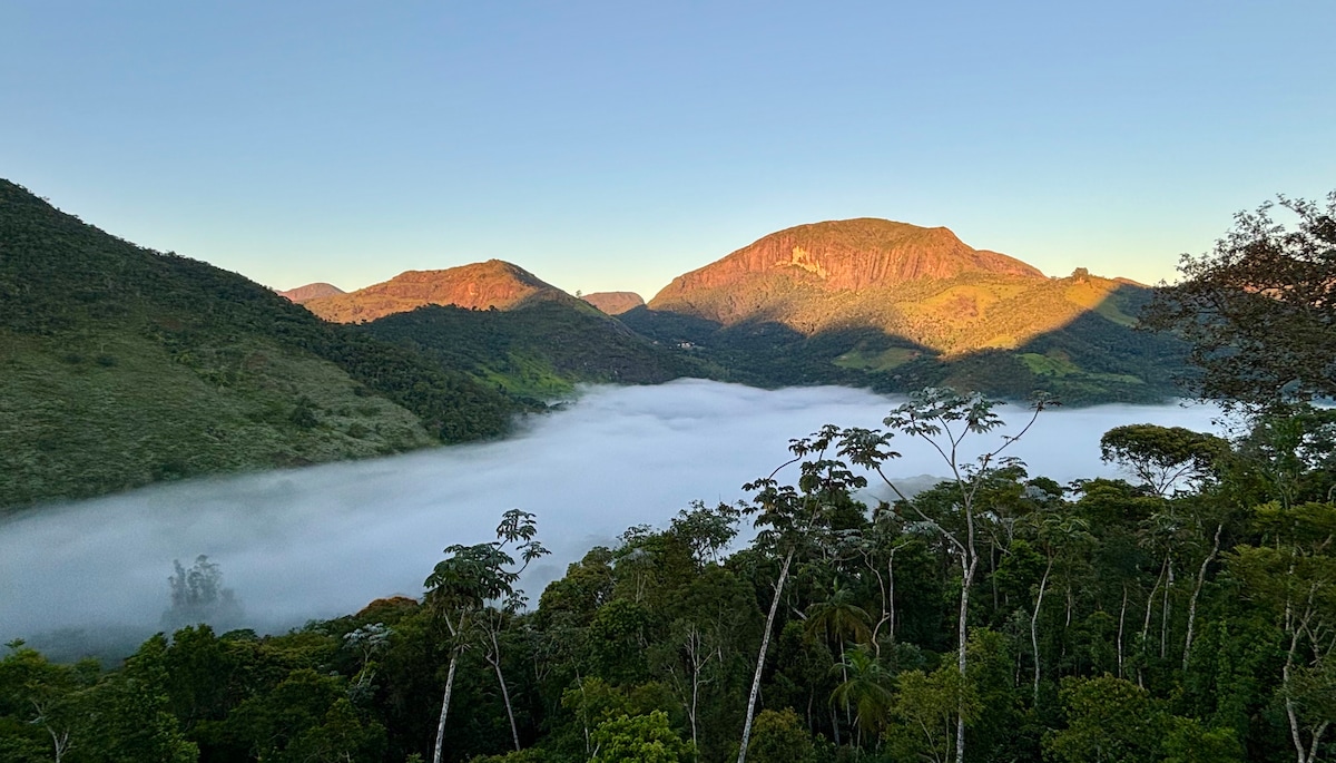 Entre o céu e o verde da serra, descubra uma casa que oferece muito mais do que hospedagem: oferece conexão com a natureza e com você mesmo. Com 2 quartos confortáveis, vista para a Pedra da Tartaruga e fácil acesso à trilha, aqui o tempo desacelera e os sentidos se renovam. A casa conta com cozinha equipada, estacionamento, TV, wifi e roupa de cama. O refúgio ideal para quem busca descanso com beleza natural a cada janela.