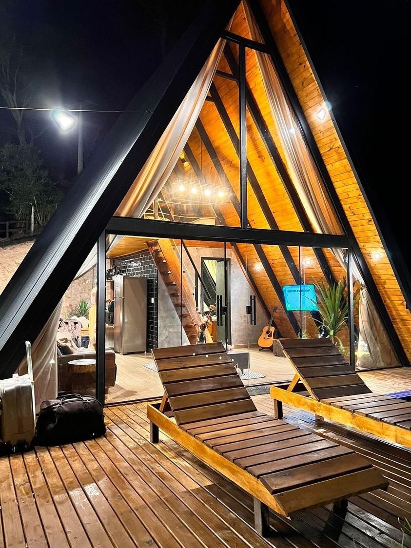 Viva momentos inesquecíveis a dois no nosso charmoso chalé em estilo A-frame, rodeado pela natureza e com uma vista de tirar o fôlego! Chalé exclusivo e romântico, ideal para casais. Banheira de hidromassagem com vista para as montanhas Arquitetura charmosa e ambiente rústico moderno Jardim privativo e espaço externo para relaxar Contato direto com a natureza Perfeito para lua de mel, comemorações especiais ou simplesmente para fugir da rotina e recarregar as energias.