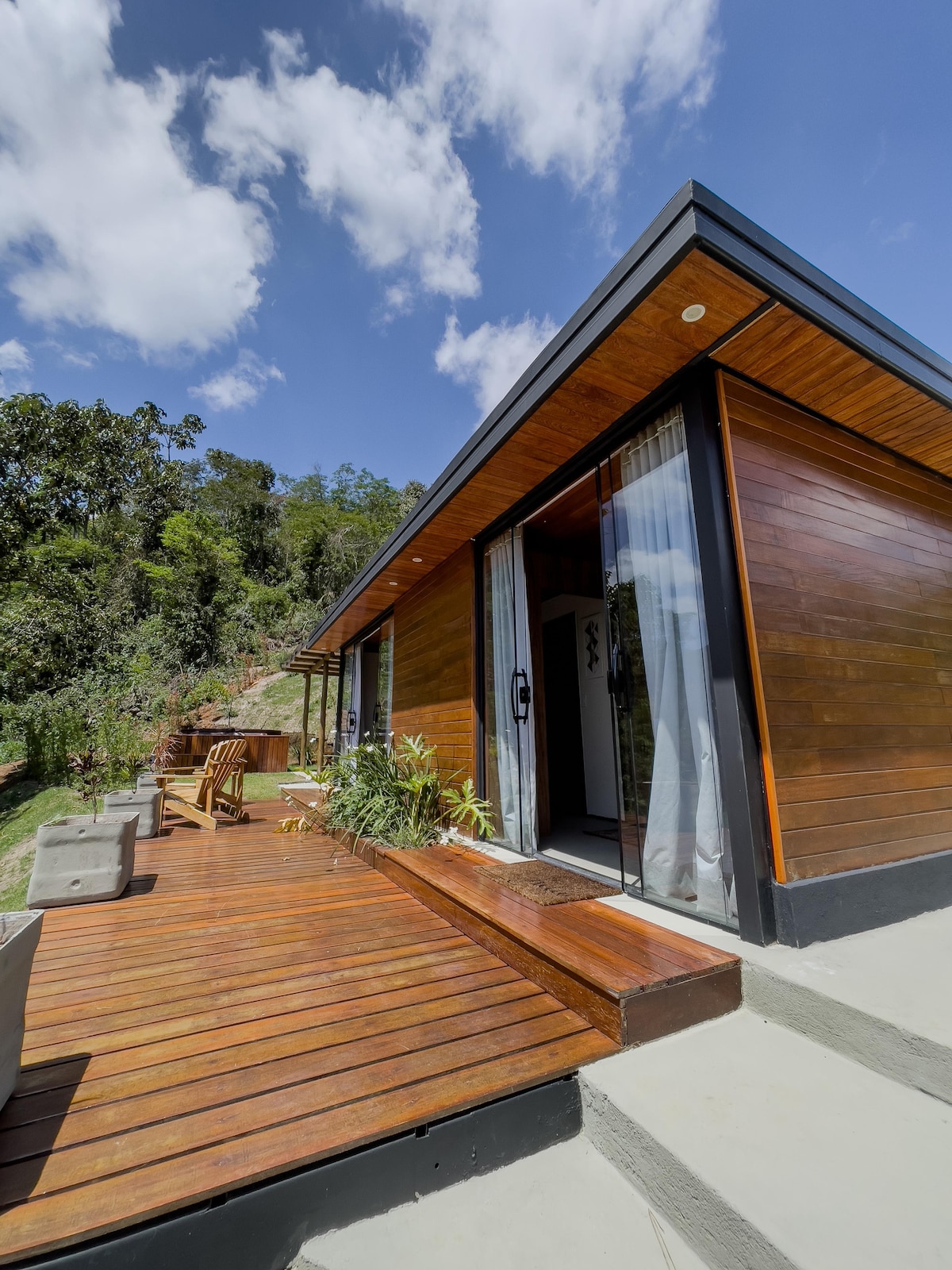 Este lugar único tem um estilo próprio,esta cabana foi construída em meio a natureza onde você pode desfrutar de uma vista exuberante e é toda a tranquilidade da serra do Rio de Janeiro. O espaço é uma construção nova cheia de estilo e comodidade.Ideal para vivenciar momentos incríveis. Ao alcançar o fim das escadas você estará em um local inenarrável!