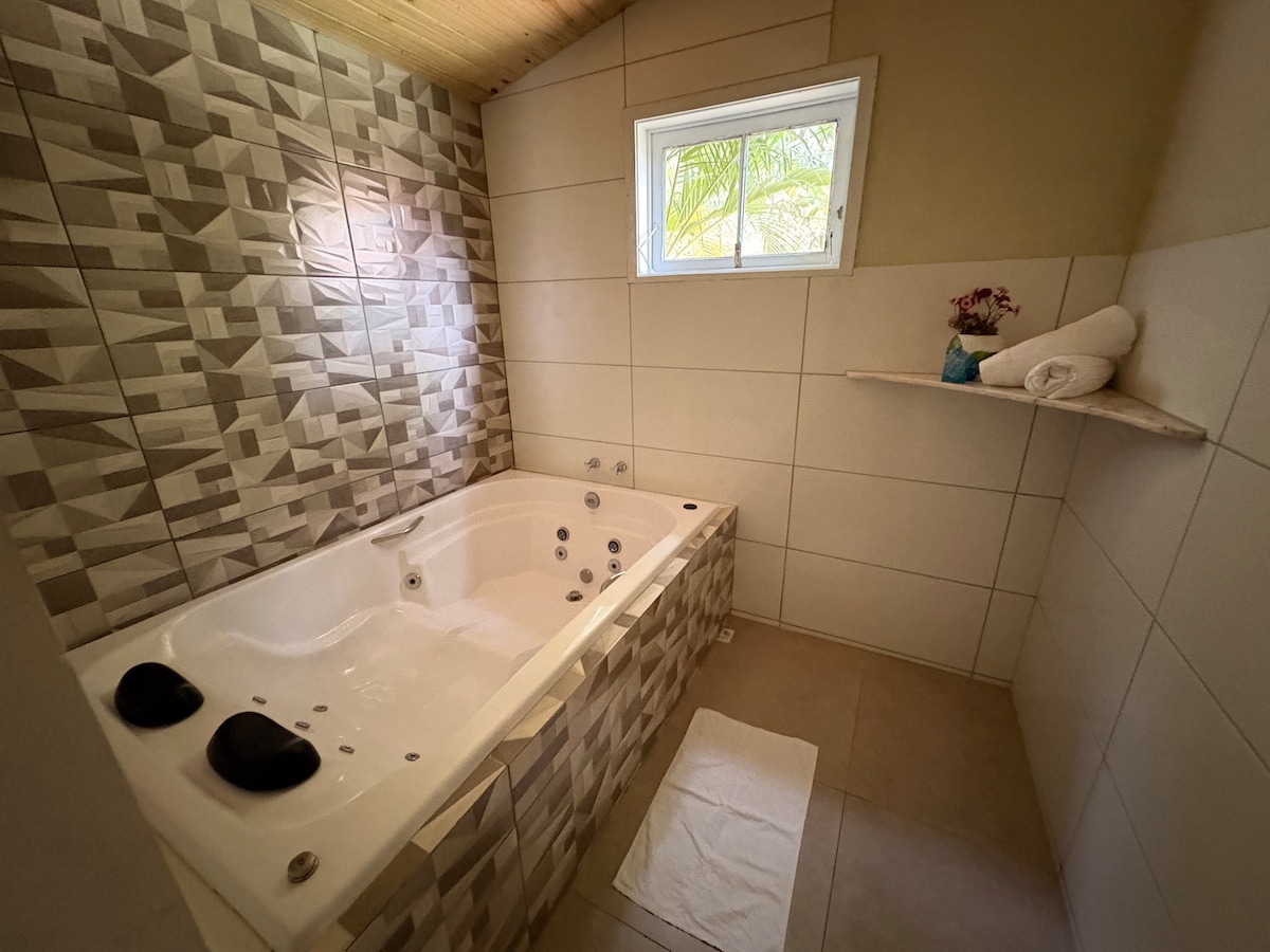 Desfrute de uma estadia única em nossa suíte localizada em um lindo sítio, rodeado por uma rica diversidade de animais. Acorde com o canto de pássaros silvestres e admire a beleza das aves e cavalos que habitam nosso espaço. Venha relaxar e se conectar com a natureza em um ambiente tranquilo! Nosso espaço conta com 2 Camas (1 casal + 1 solteiro), banheiro, cozinha completa, piscina e área de lazer.